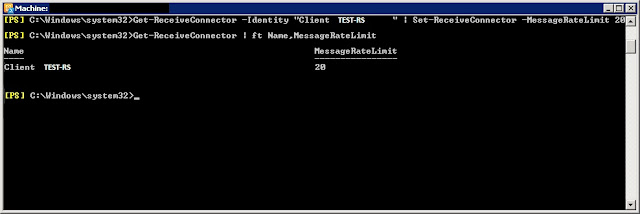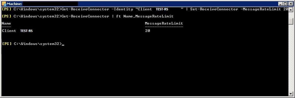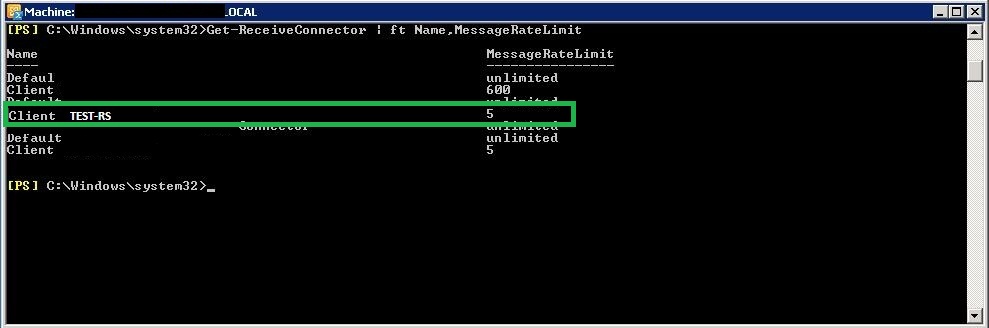 get-receiveconnector | ft name,messageratelimit