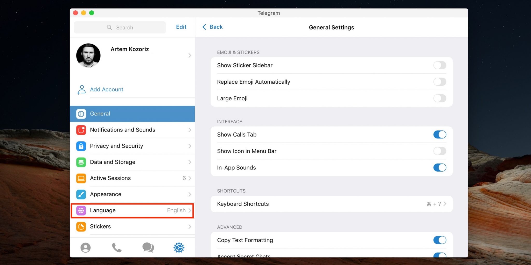 Мессенджер поменять язык