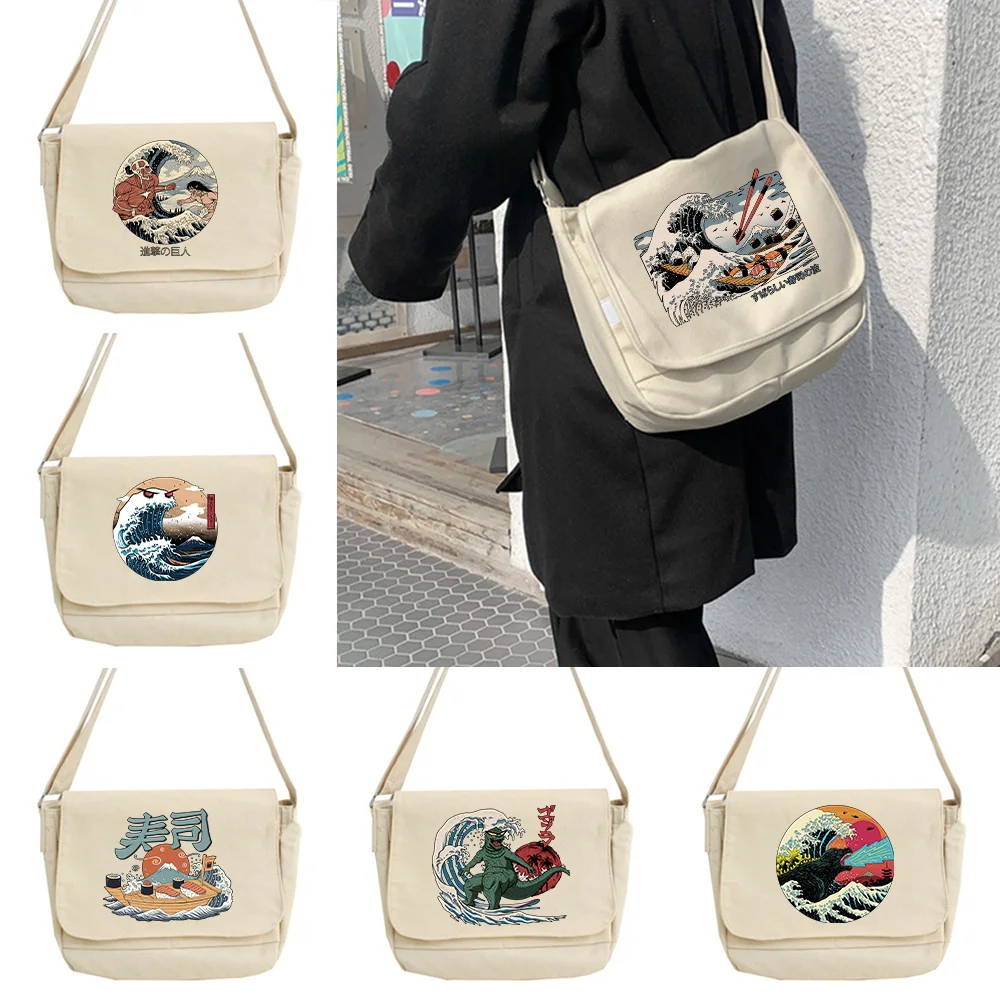 Messenger Bag Japanese Multi-function Messenger Bag Trend Student Harajuku College Style Portable One-shoulder Wave Pattern Bags - Купить с бесплатной доставкой