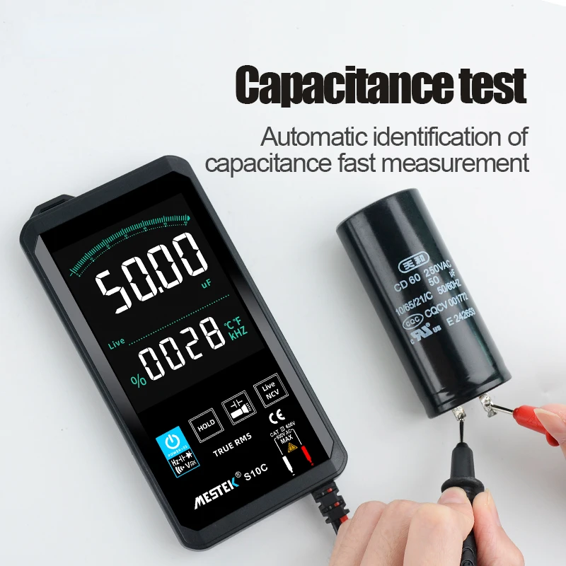 Mestek Multimeter S10 Touching Ultra-thin Multimeter Voltage Frequency Capacitance Resistance Meter 6000 Counts Color Screen - Купить с бесплатной доставкой