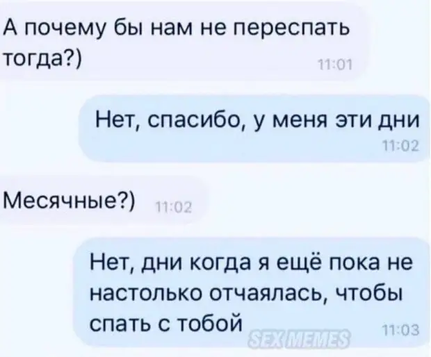 Месячные - не самое приятное время месяца . Остаётся только плакать и смеяться сквозь слёзы . Likeyou подобрал одиннадцать картинок как раз на этот случай .