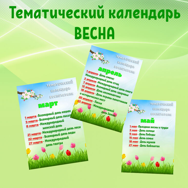 Месяцы весны для дошкольников