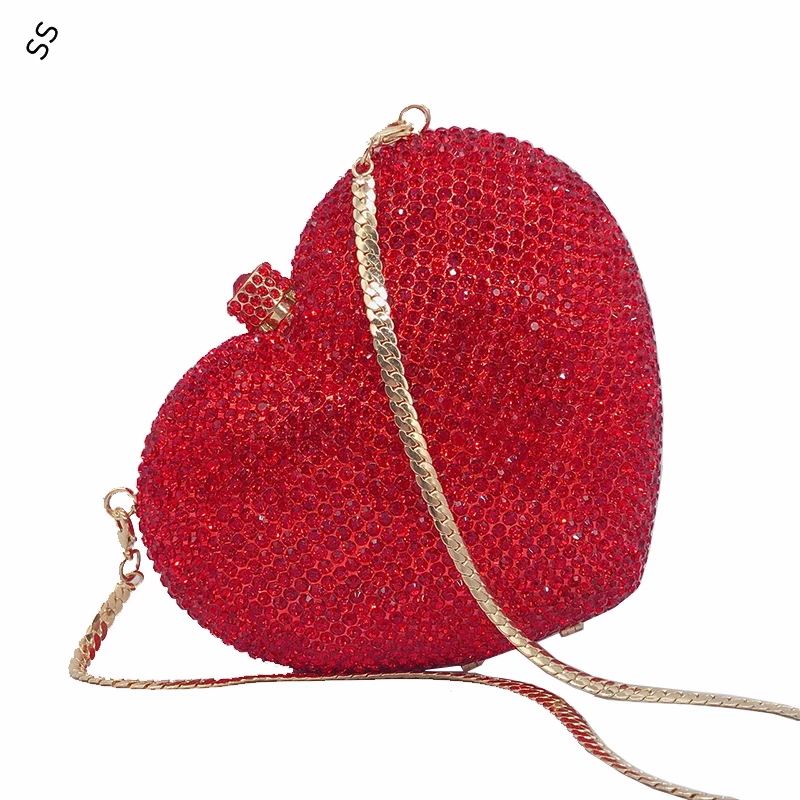 nCakLAqOЗдесь вы сможете купить Metal Chain Inlaid Full Rhinestone Diamond Red Heart Style Handbag Women's Fashion Hard-shell Clutch Bags for Party's Purse с бесплатной доставкой до вашего почтового отделения.
