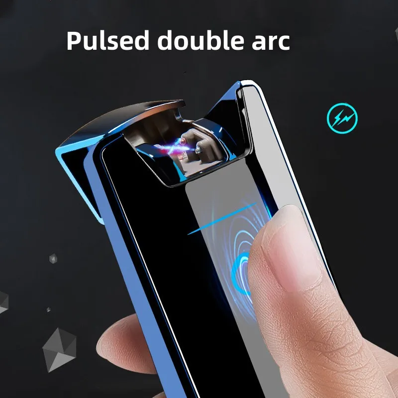 Metal Pulse Dual Arc Suspension Induction USB Rechargeable Lighter Outdoor Windproof Portable Power Display Man's Gadget - Купить с бесплатной доставкой