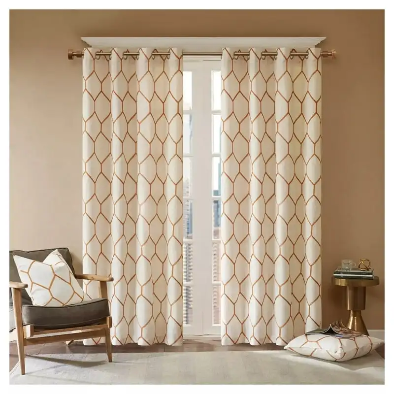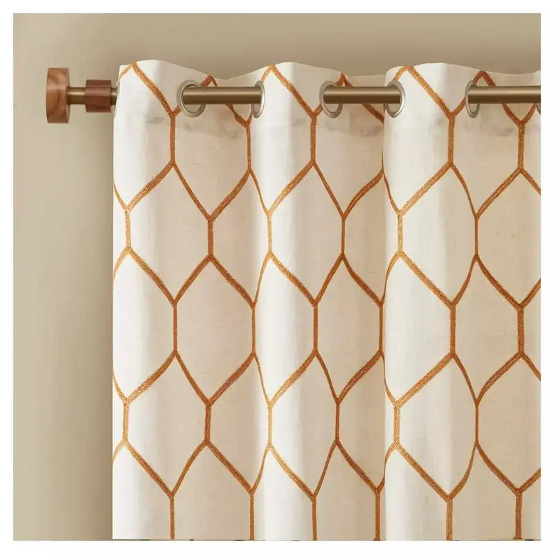 Metallic Geo Embroidered Light Filtering Window Curtain Panel, 50" x 95", Spice - Купить с бесплатной доставкой