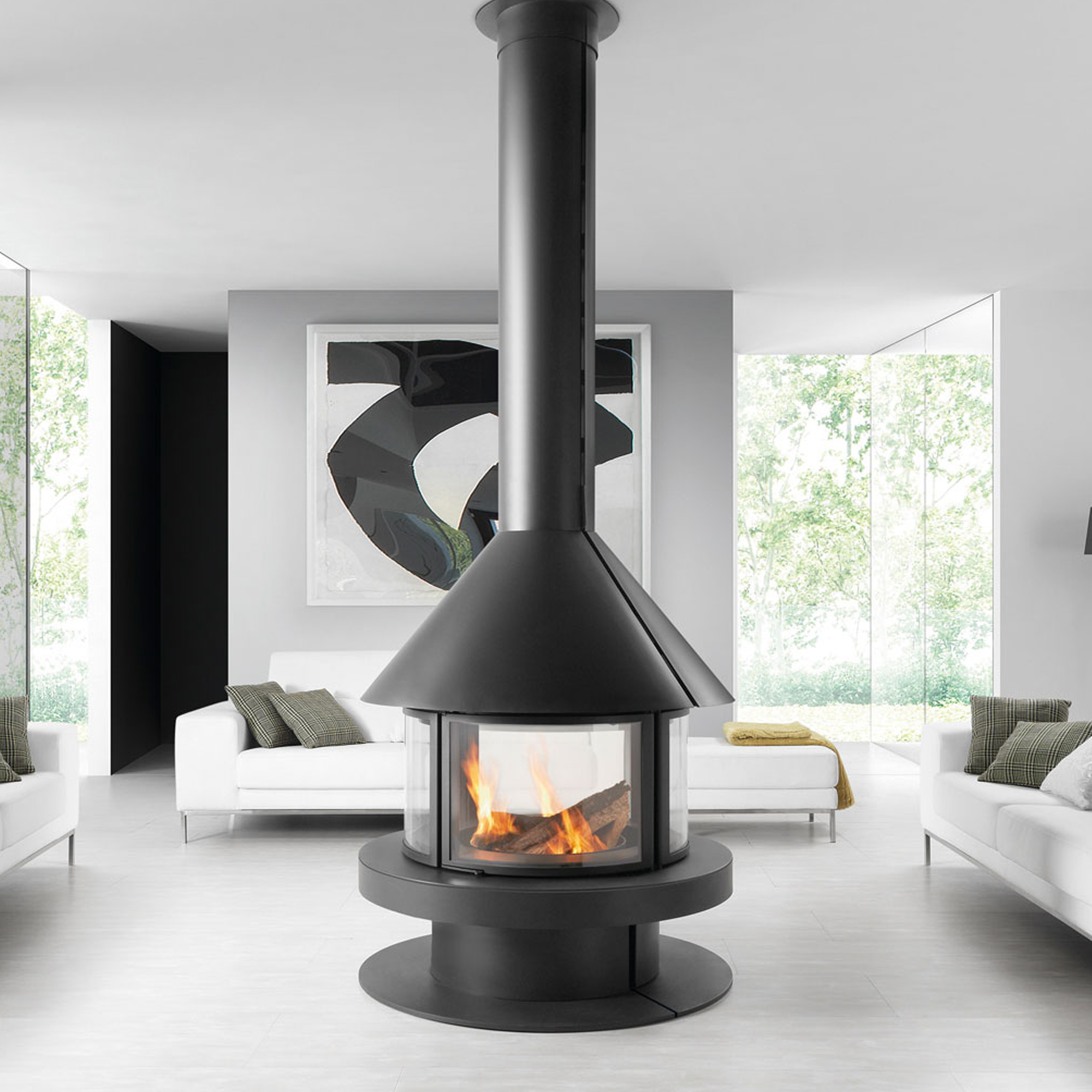 Металлический камин на дровах