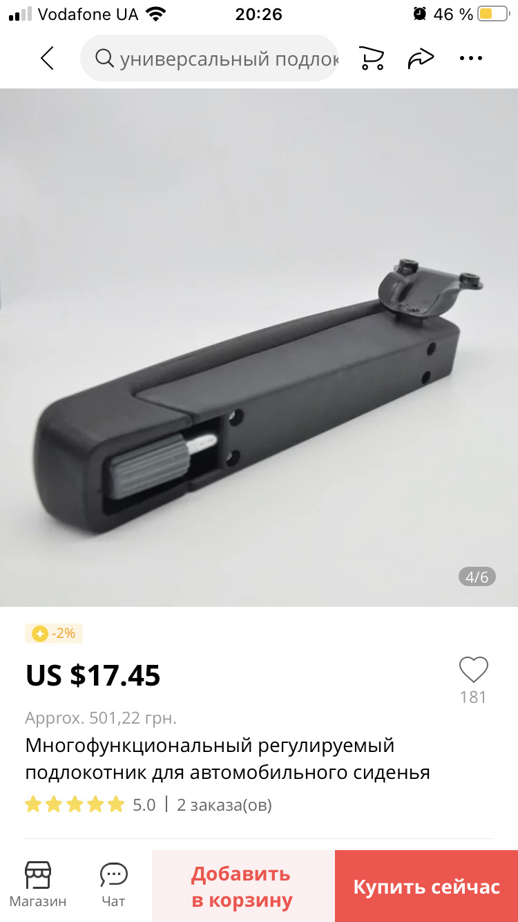 Металлический регулируемый подлокотник