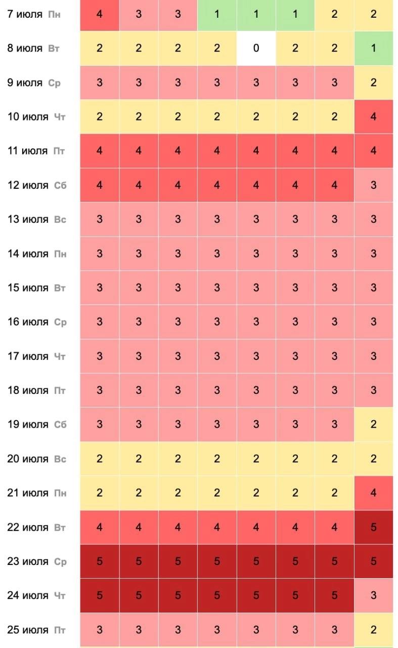Метеочувствительные дни в июле