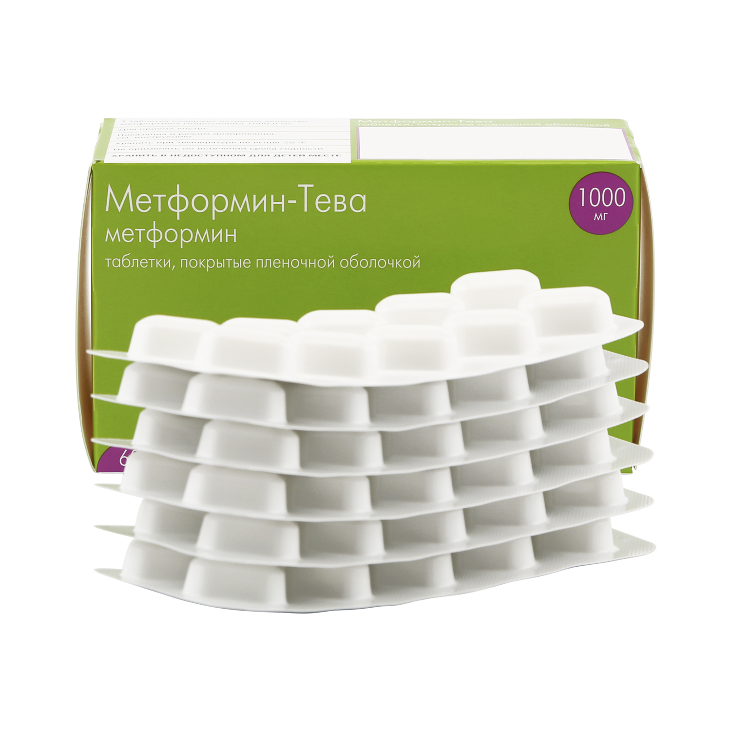 Metformin-Teva tabletleri 1 g 60 adet.