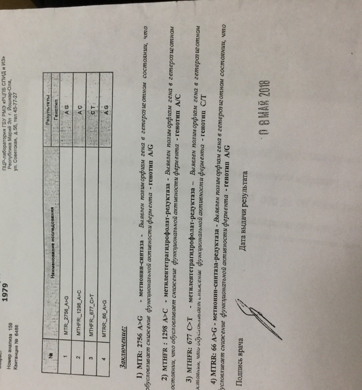 Метионин-синтаза (MTR Asp919Gly A>G ) [email protected] Личный кабинет