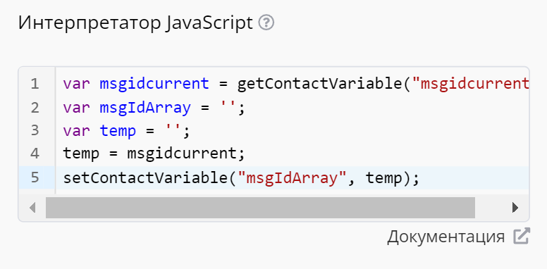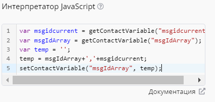 Ранее в переменную msgIdArray, которую мы создали в первом блоке Интерпретатор JavaScript, мы вписывали прежние значения ID, соответственно для формирования актуального массива нам необходимо получить все прежние значения.