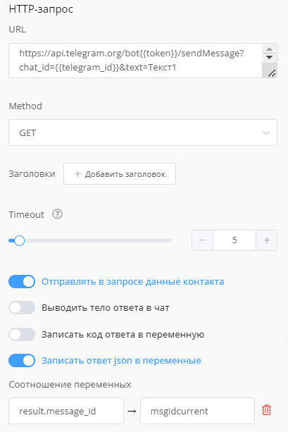 3. В HTTP-блоках с отправкой сообщений, в дальнейшем мы не вносим никаких структурных измненений.