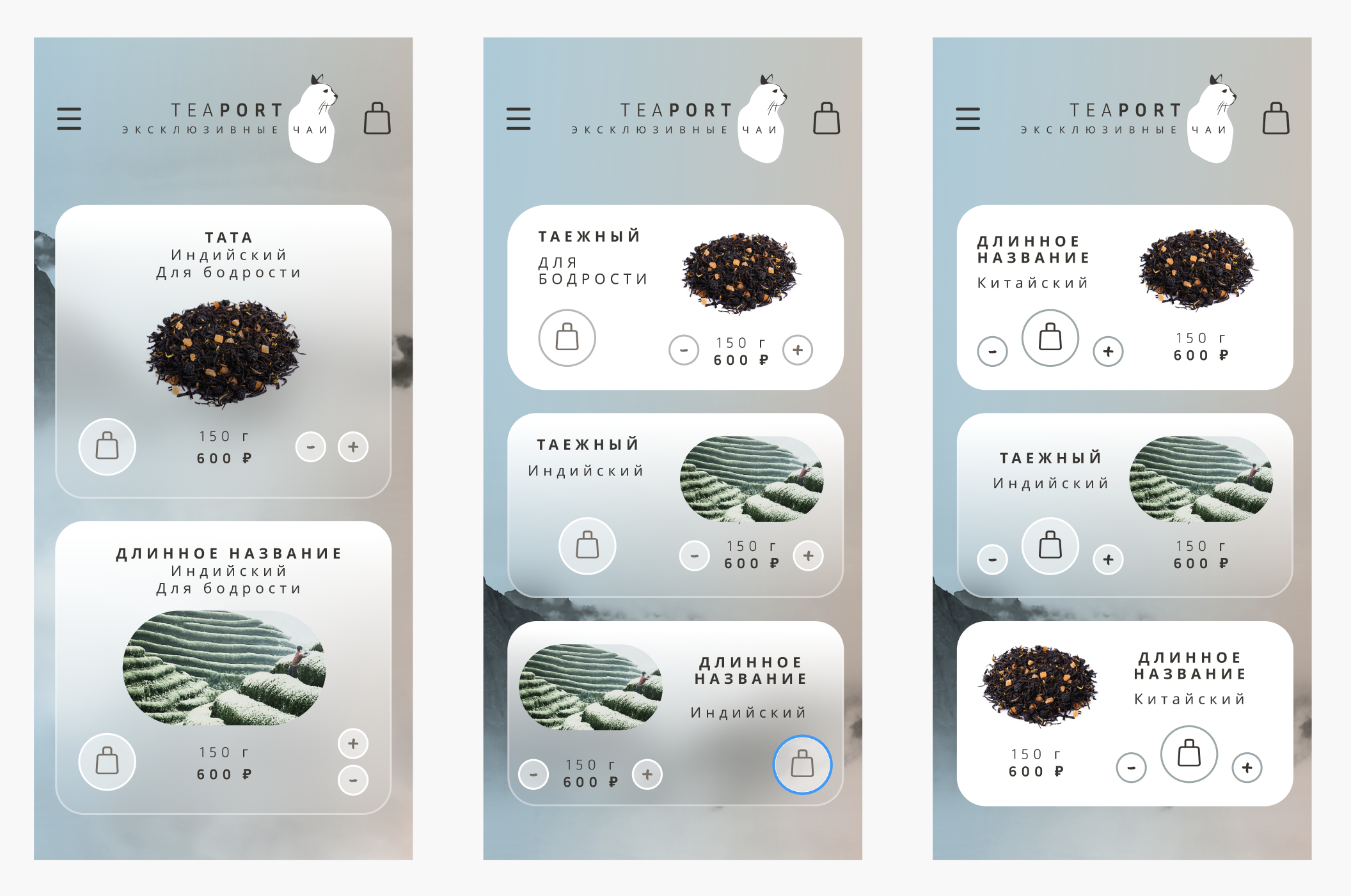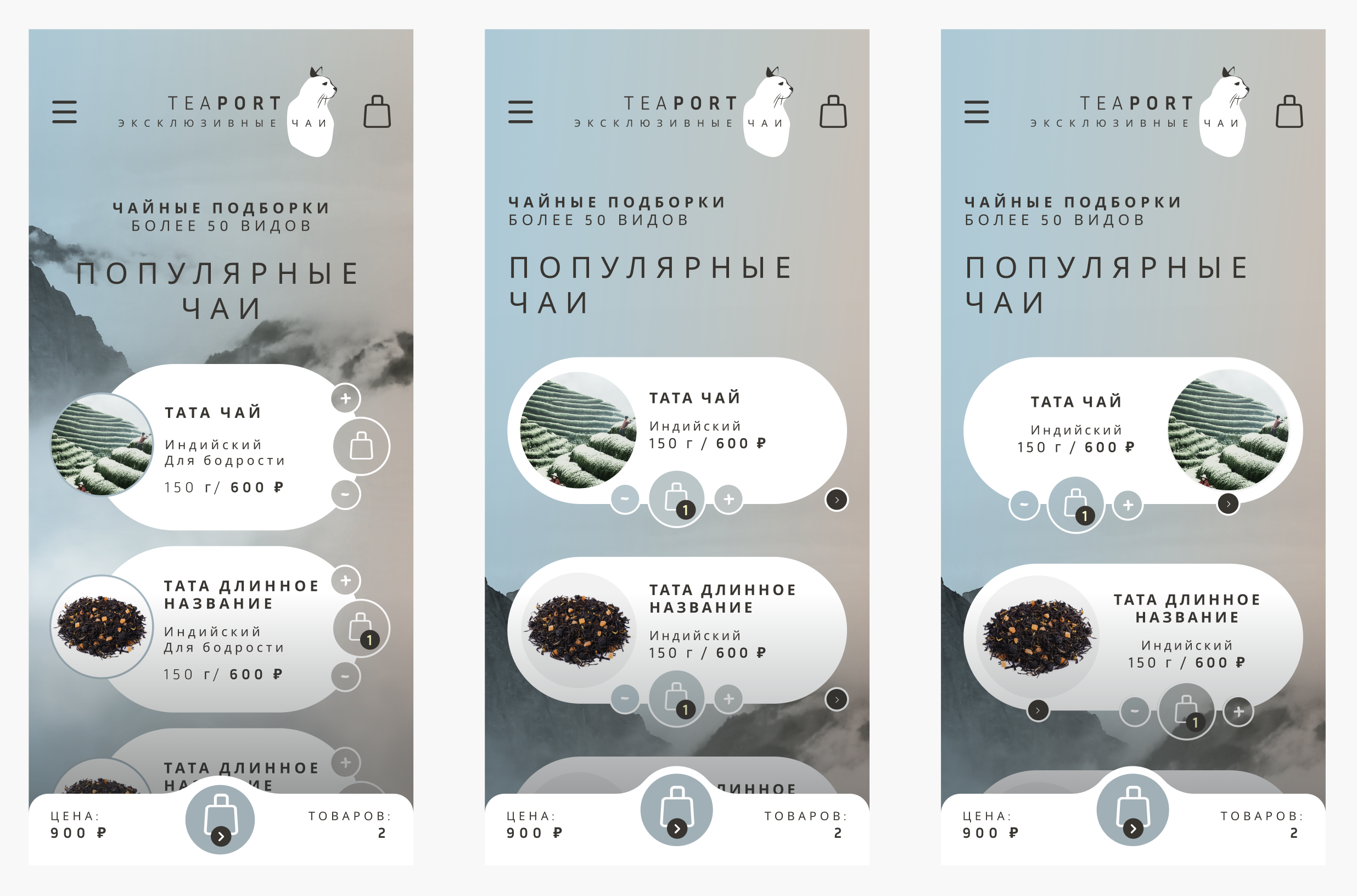 У нас уже был разработан десктоп, поэтому рассмотрим варианты карточек под мобильную версию.