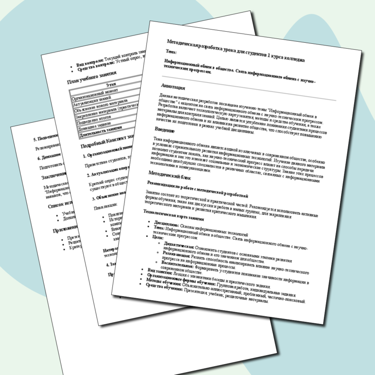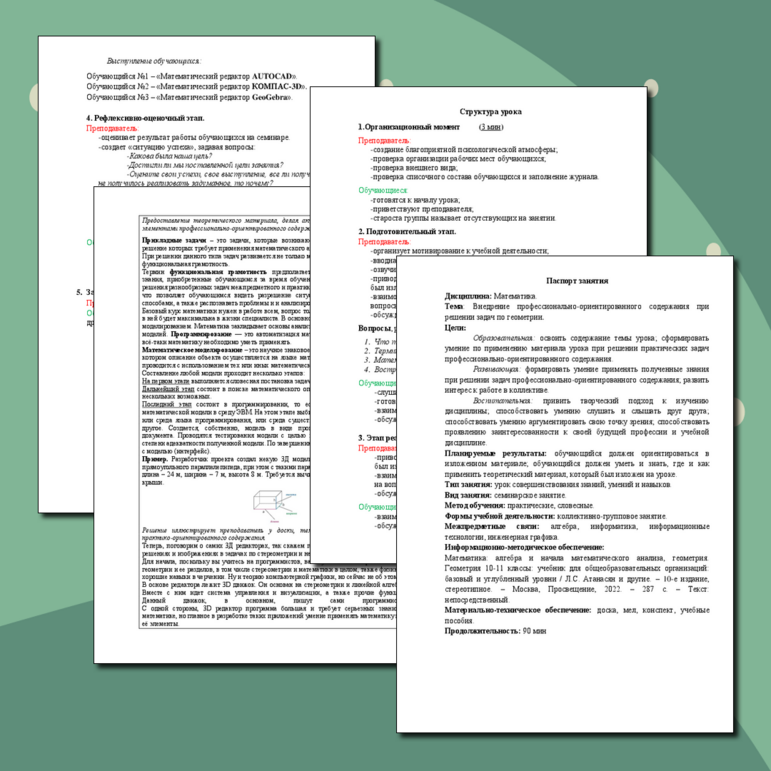 Методическая разработка конспекта занятия
