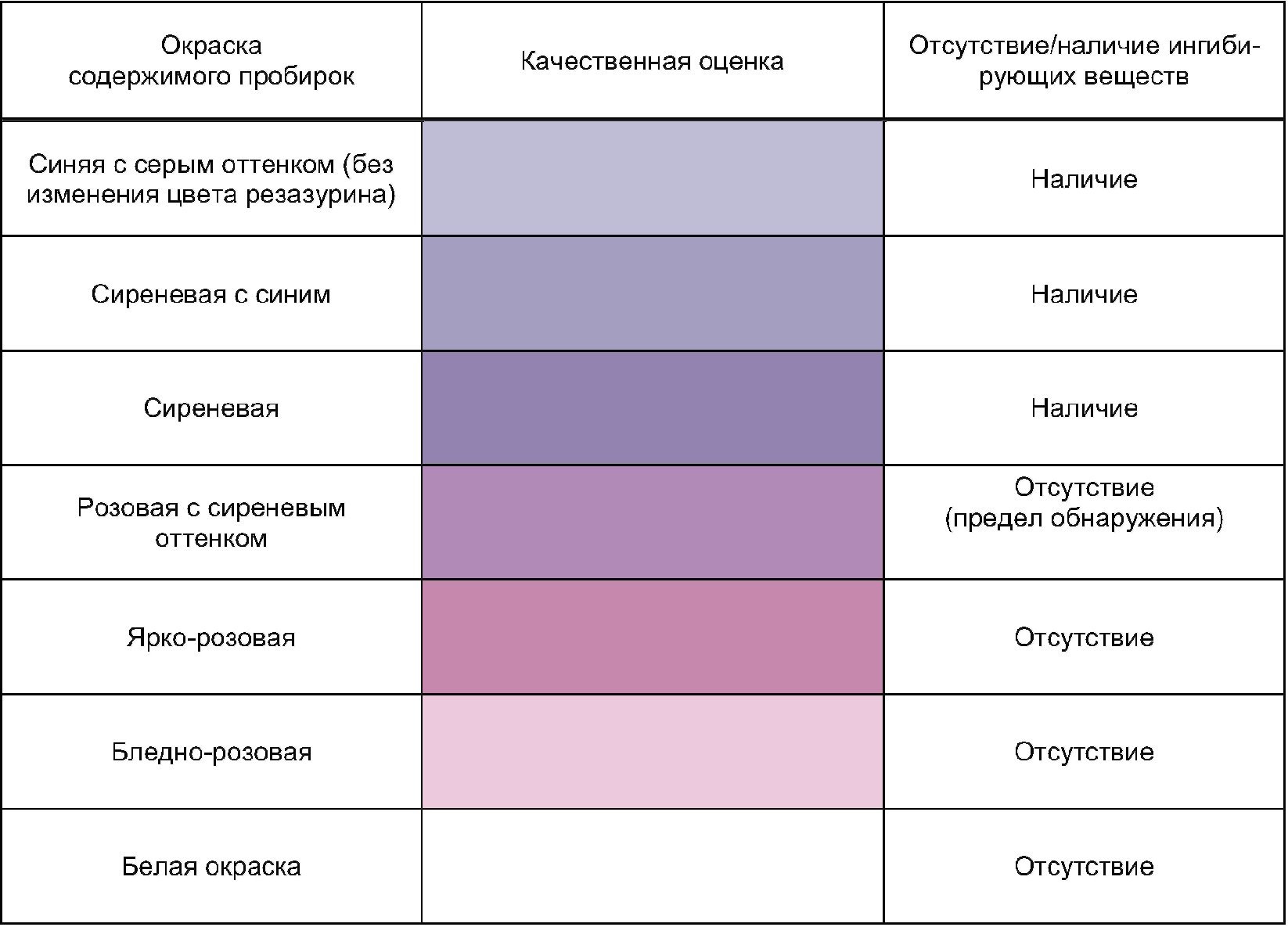 Методы окраски таблица