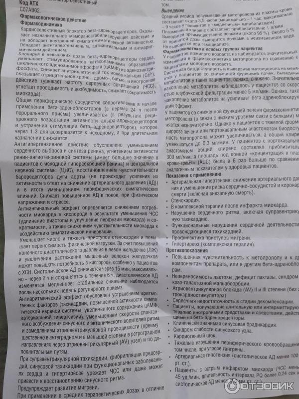 Метопролол - 7 отзывов, инструкция, аналоги, цена 25 руб .