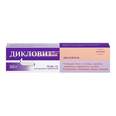Лекарственная форма, в которой выпускается "Дикловит", представляет собой гель для наружного применения производства АО "Нижфарм" с концентрацией действующего вещества 1% .