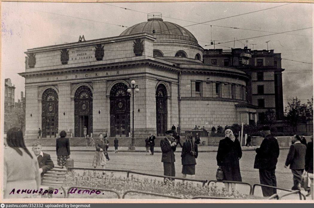 Станция «Нарвская» создавалась по проекту архитекторов А .Васильева, Д .Гольдгора, С .Сперанского . Фото 1958 года . Центральный зал в 1959 году . Станция в 1961 году .