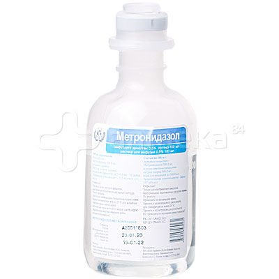 Метронидазол раствор для инфузий 5 мг/мл бутылка 100 мл, № 1 . Метронидазол раствор для инфузий 5 мг/мл бутылка 100 мл в пачке, № 1 . Метронидазол пессарии 500 мг блистер, № 10 . Метронидазол раствор для инфузий 0,5 % контейнер 100 мл, № 1 .