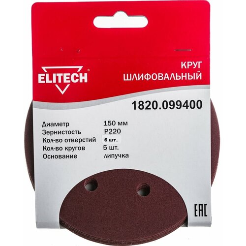 Meule Elitech 1820.099400 150mm P220 5pcs