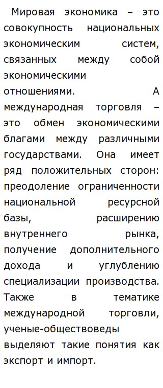 Международная торговля сочинение пример