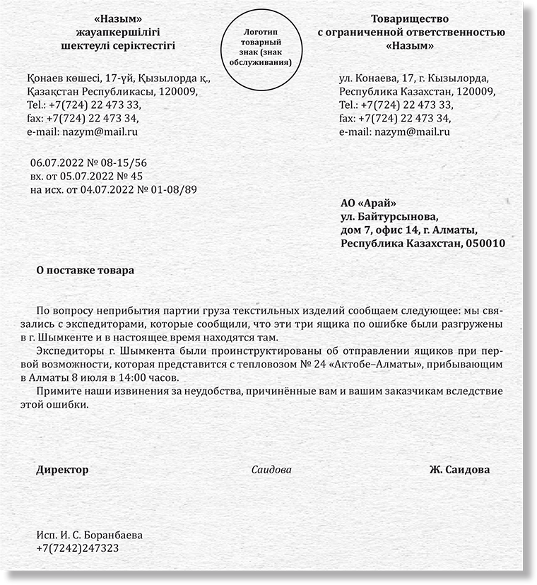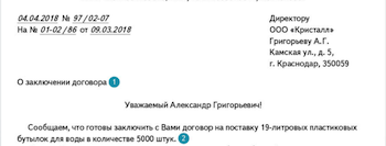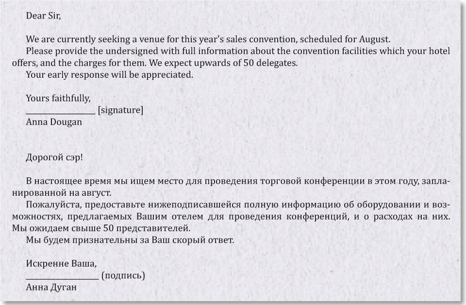 Международные письма образец