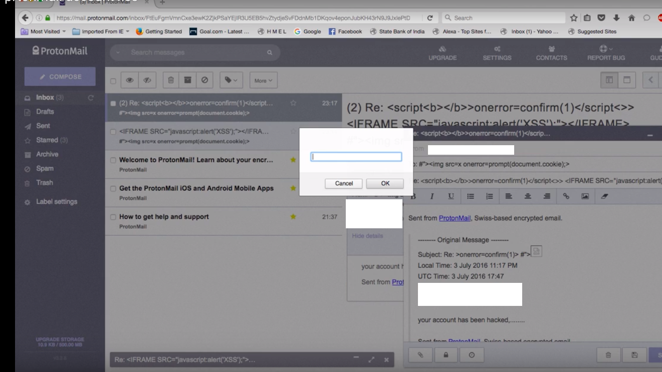 Межсайтовый скриптинг на ProtonMail.com