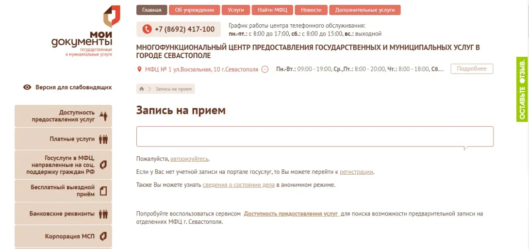 Мфц ялта запись на прием