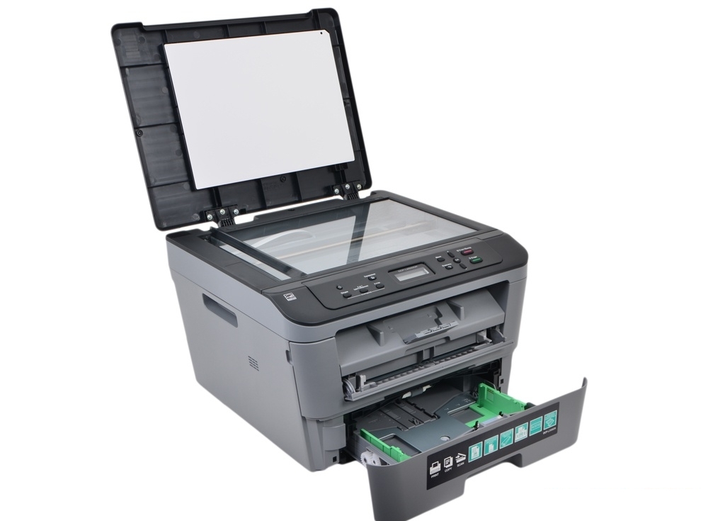Сканер Brother DCP- L2500DR . В этом МФУ присутствует классический цветной планшетный сканер . Для запуска сканирования нужно откинуть крышку устройства, положить исходник на горизонтальную . . .