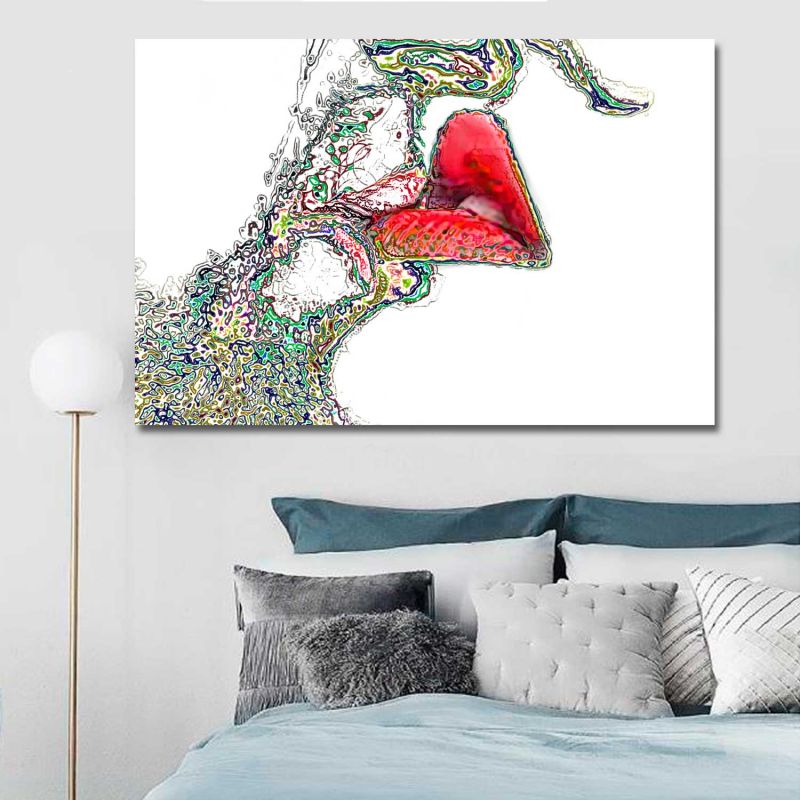 Czarnowłosa laska z długim ktuasem w ustach