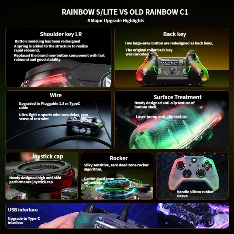 MiFuny Wired Gamepad Transparent RGB Backlight Controller for PC/Switch/PS4 E-sports Gamepad Support 3.5MM Audio Gaming Handle - Купить с бесплатной доставкой