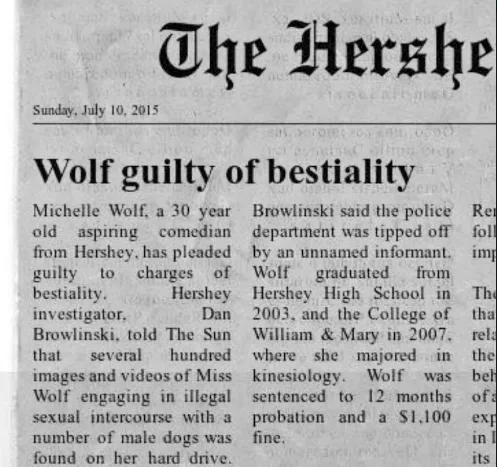 Michelle Wolf Arrested For Beastiality