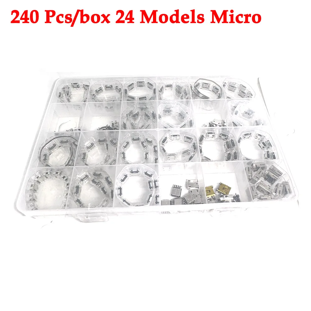 Micro USB Connector Set 240 Pcs/box 24 Models Female mini usb soldering connectors diy,For MP3 Huawei Samsung SMD DIP Socket Kit - Купить с бесплатной доставкой