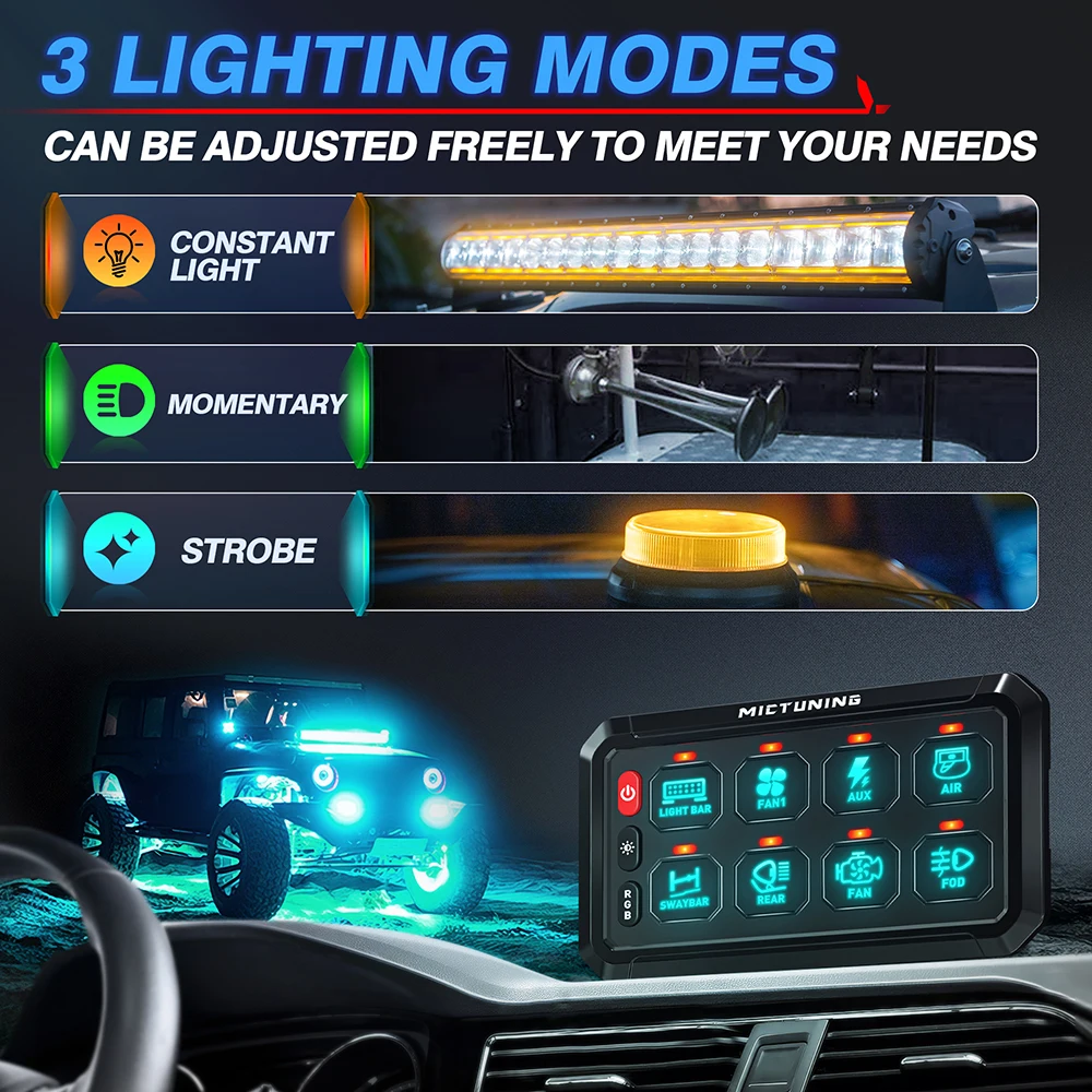 "Mictuning 8 Gangs LED Switch Panel On-Off Control Relays System Background Light Electronic Relay System for Truck Caravan Boat" * Buy Now With Free Shipping Just For $119