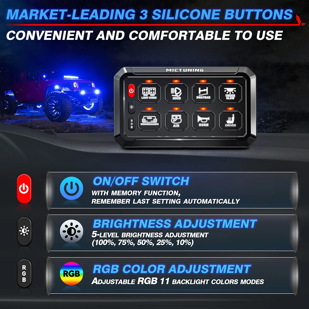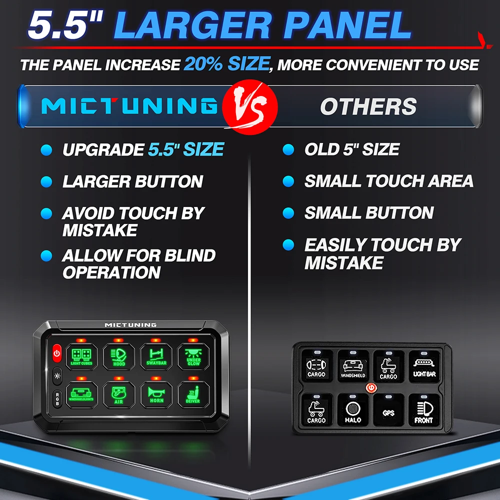 PJKwwkILkHere you can buy Mictuning 8 Gangs LED Switch Panel On-Off Control Relays System Background Light Electronic Relay System for Truck Caravan Boat with free delivery to your post office.