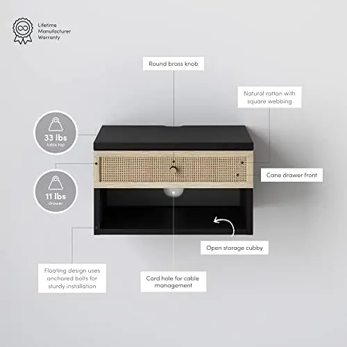 WIciSCFeyOHere you can buy Mid-Century Modern Floating Wall Mount Storage Drawer Bedside End Table Nightstand, 1, Brown Walnut Mini bedside table Cream bed with free delivery to your post office.