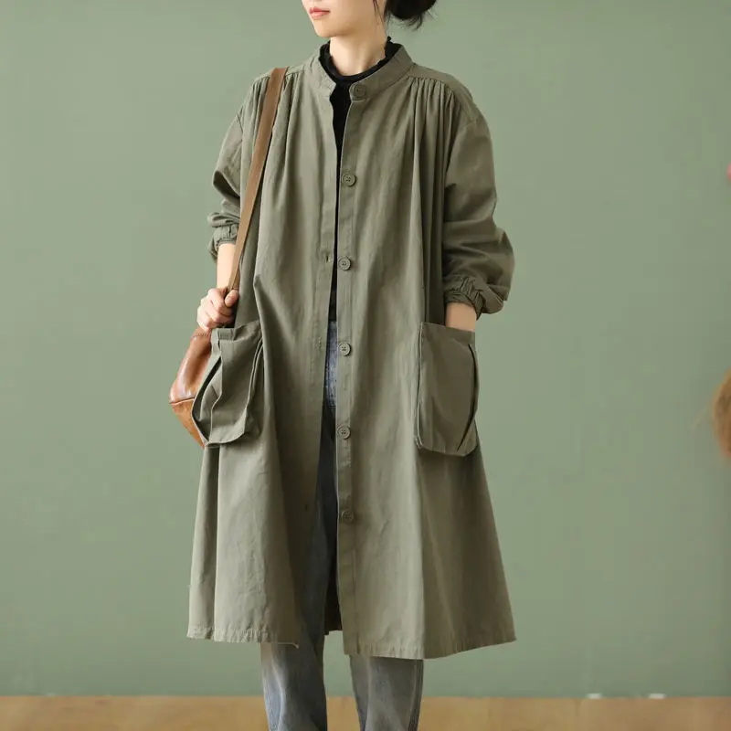 "Mid-length Women's Trench Coat Spring and Autumn Loose Leisure Wild 2023 Single-breasted Thin Tooling Style Women's Clothing New" * Buy Now Just For 35$