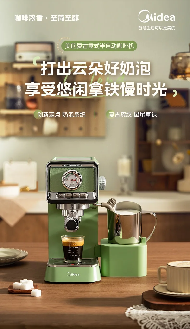 AhJqIXLmRTHere you can buy Midea Italian Coffee Machine Household Full & Semi Automatic Small Integrated Fixed Point Frothed Milk Commercial American Retro with free delivery to your post office.