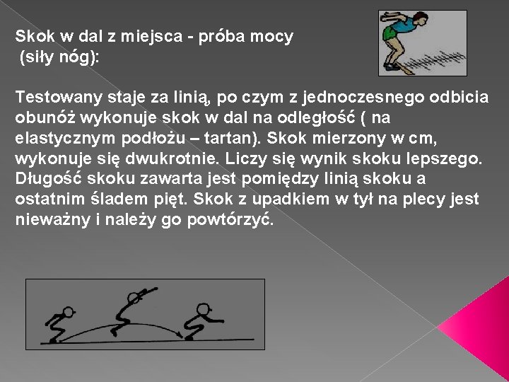 Wykonanie: Badany ściska dynamometr dłoniowy ręką silniejszą . Nadgarstek powinien znajdować się w przedłużeniu linii przedramienia . W czasie wykonania próby ręka testowana nie może dotykać żadnej części ciała . Pomiar: Siła dłoni mierzona jest w kilogramach . Liczy się pomiar lepszy z dwóch prób . Uwagi: Dynamometr powinien być dopasowany do wielkości dłoni tak, aby . . .