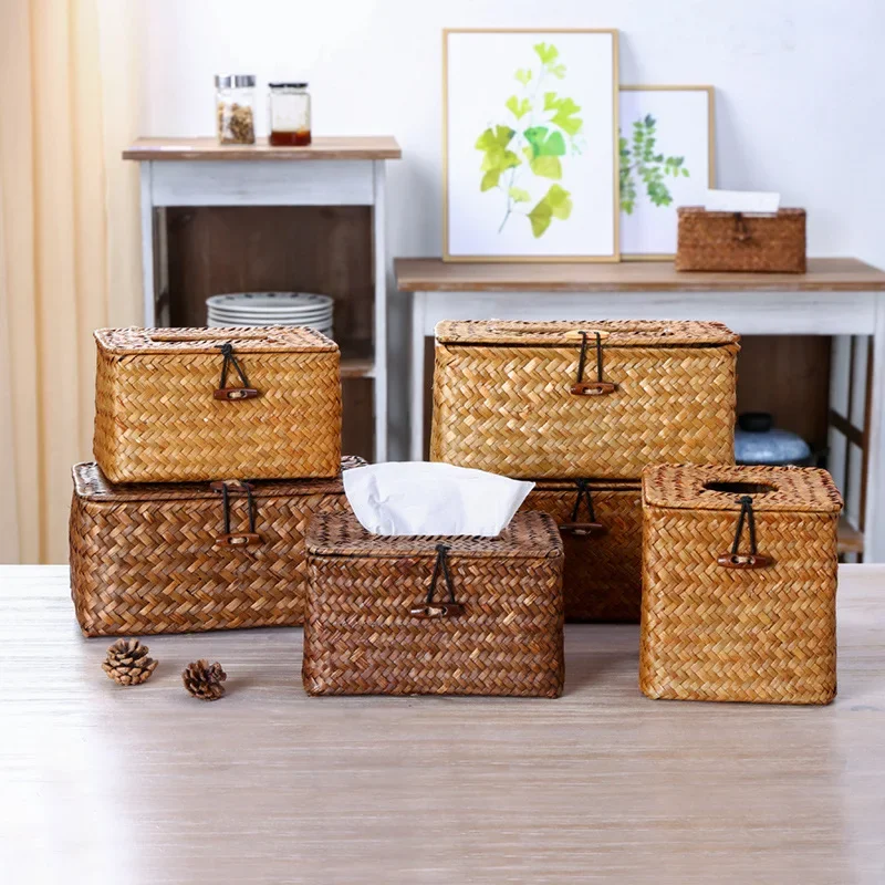 Mifuny Handwovens Storage Baskets Wicker Rattan Woven Tissue Box and Car Mounted Removable Tissue Cover Storage and Paper Drawer - Купить с бесплатной доставкой