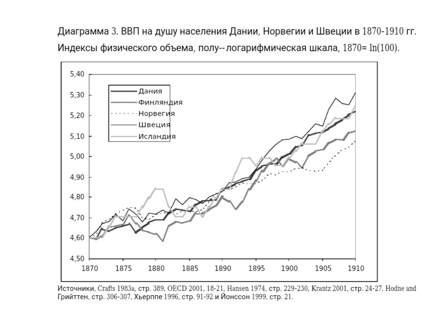 И ведь действительно кажется, что страны скандинавского социализма выделяются на фоне остальных стран, однако, если по-настоящему проанализировать причины успеха Скандинавии, становится очевидным, что регион процветал еще до появления государства всеобщего благосостояния. Такие страны, как Дания и Швеция, испытали значительное повышение уровня жизни и экономический рост до создания государств всеобщего благосостояния. Это произошло потому, что они проводили фазы рыночных реформ в девятнадцатом и двадцатом веках.