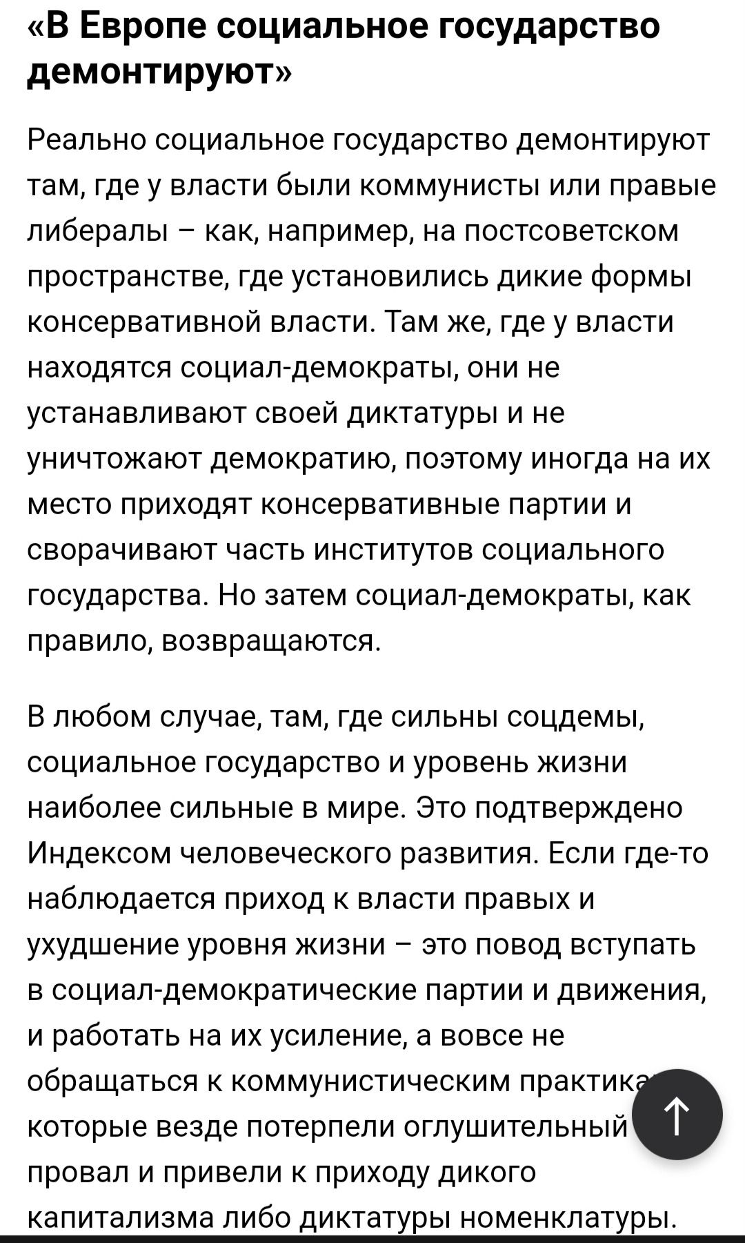 Наконец, мы видели, что страны-лидеры по Индексу человеческого развития отличаются тем, что имеют сильные социал-демократические партии. Поэтому здесь слова коммунистов не соответствуют действительности."