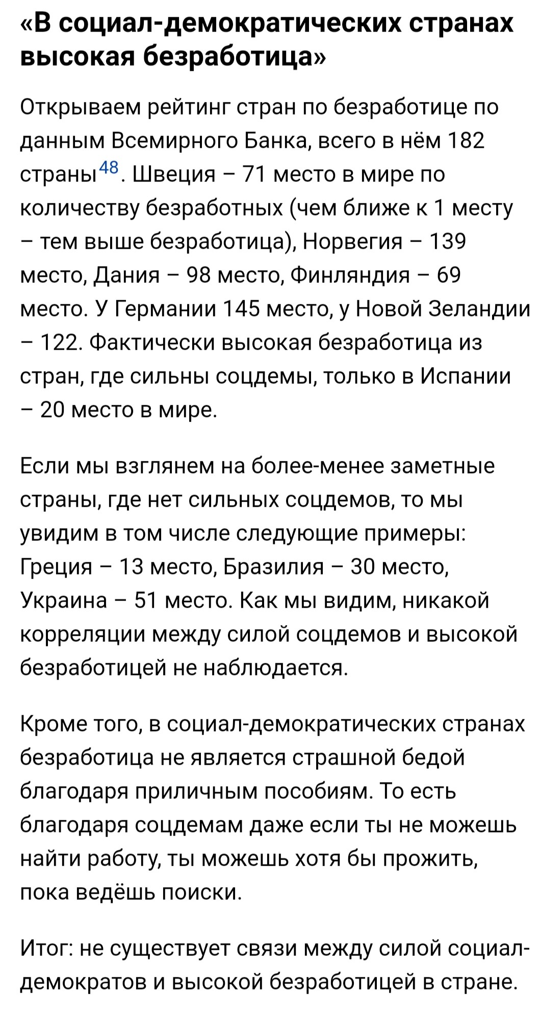 Я обязательно перейду к основному тезису насчёт капитализма и успеха Скандинавии, но меня смущает цитата этого чудо экономиста, который в своей книге "Как устроена экономика", уже впаривает абсолютно левоцентристскую агитку. И самое смешное тут то что уровень безработицы в Швеции сейчас больше чем 90 лет тому назад. Уровень безработицы в Швеции составил 7.7% на момент 2023-24 года