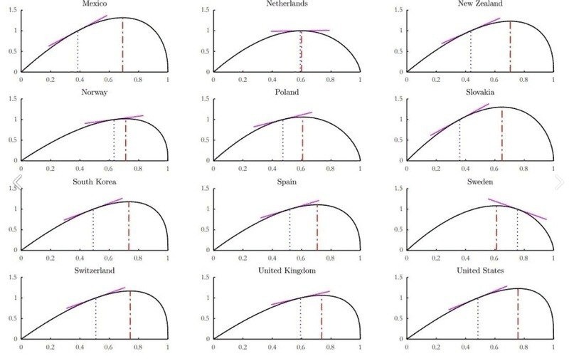 Ставка налогов превышает оптимальную в данных странах:Бельгия, Австрия, Финляндия, Дания и Швеция, в которой перекос очень огромен.