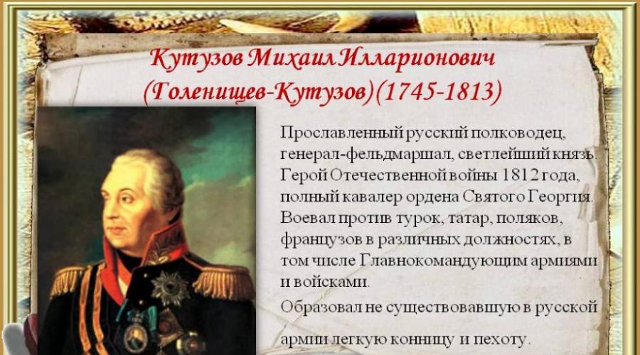 Биография: Михаил Кутузов (16 сентября 1745 - 28 апреля 1813) - полководец . Читайте полную биографию знаменитости . Фотографии, подробно о семье, видео на портале Узнай Всё
