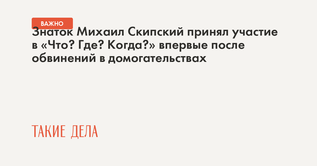 Игрока «Что? Где? Когда?» Михаила Скипского обвинили в . . .
