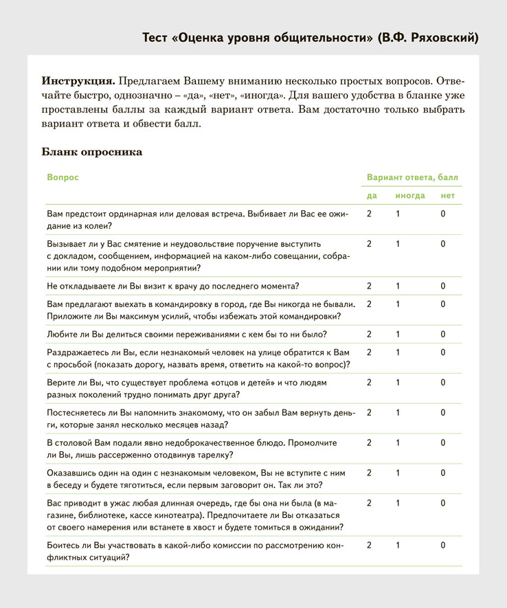 Михельсон тест коммуникативных