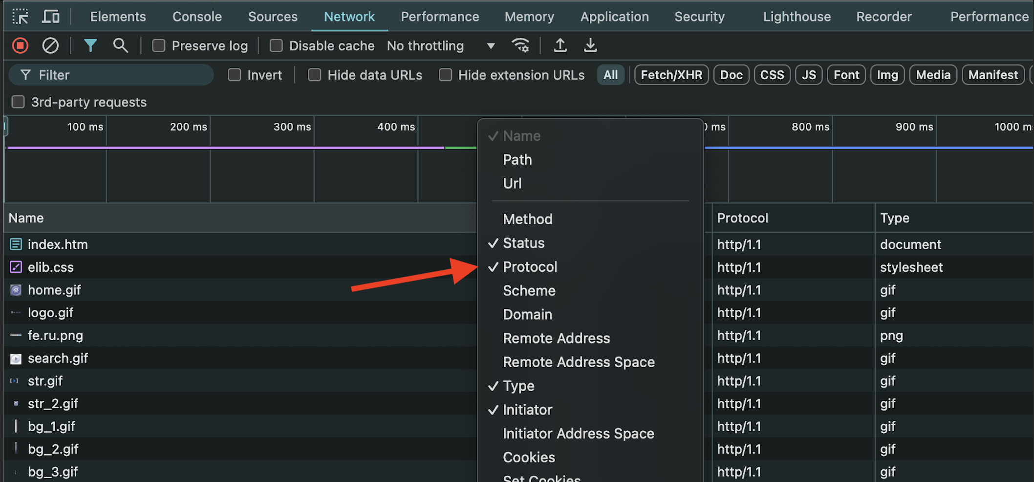 Как читать картинку network в Perfomance.