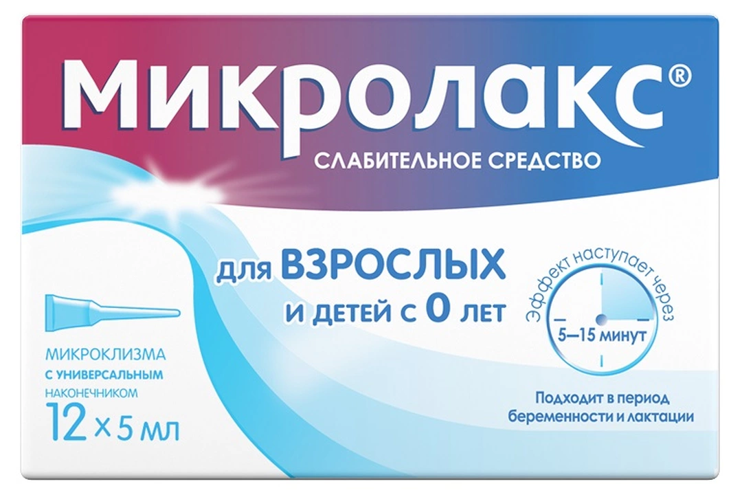 Форма выпуска, состав и . . . Микролакс - комбинированный препарат, оказывающий слабительное действие . Эффект наступает через 5-15 мин .