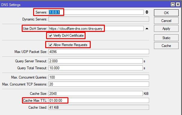 Mikrotik dhcp dns
